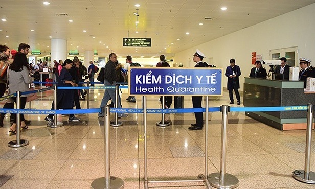 Du khách vào Việt Nam thông qua trạm kiểm dịch y tế tại sân bay Nội Bài. Ảnh: Giang Huy .