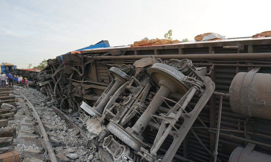 Sau nhiều lượt, đầu máy lao xuống mương. Mãi đến 7 giờ sáng, các dịch vụ khẩn cấp mới có thể loại bỏ thi thể của Ruan Hong (42 tuổi, Tai Bin) và hỗ trợ Ruan Xuande (33 tuổi, Hồng Yến). Sau nhiều vòng đua, đầu máy bị kẹt trong mương. Phải đến 7 giờ sáng, đội cứu hộ mới có thể gỡ xác của Nguyễn Hồng (42 tuổi, Thái Bình) và trợ lý Nguyễn Xuande (33 tuổi, Hung Yen). Nó bao gồm đầu máy xe lửa và 15 chiếc xe. Đặc biệt là hai chiếc xe đầu tiên có hành lý và nhà ăn, sau đó có mười hai chiếc, và chiếc cuối cùng sẽ được cung cấp. Sau vụ tai nạn, 6 phương tiện đang chuyển động bị hư hỏng nặng. Tàu bao gồm đầu máy và 15 ô tô. Đặc biệt là hai chiếc xe đầu tiên có hành lý và nhà ăn, sau đó có mười hai chiếc, và chiếc cuối cùng sẽ được cung cấp. Sau vụ tai nạn, sáu chiếc xe tải bị lật đã bị hư hỏng nghiêm trọng. Chính quyền nghi ngờ rằng các nhân viên bảo vệ đã không kéo máy nặng, khiến xe tải băng qua đường sắt khi tàu vào. Chính quyền nghi ngờ rằng các lính canh đã không kéo vật nặng, khiến chiếc xe tải băng qua đường ray khi bị nuốt. Nhiều bu lông và ốc vít nằm rải rác trên đường ray. — Nhiều bu lông, bu lông của tàu nằm rải rác trên đường ray.