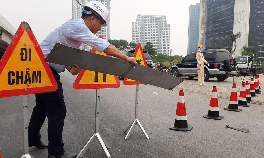 Từ 9 giờ sáng, hai đầu cầu được rào lại. Nhà thầu Việt Nam và đại diện Tổng cục Đường bộ đã lắp đặt biển báo đường cao 50 cm, biển báo công trường, biển hướng dẫn phương tiện. Đội -Police và Hà Nội kiểm tra giao thông, hơn mười người điều khiển phương tiện đến hai đầu cầu theo cả hai hướng. Khuyến cáo rằng ô tô đi từ trung tâm thành phố đến vùng ngoại ô nên đi qua đường Phạm Chí Tùng, Võ Chí Công, cầu Nhật Tân và ngược lại, đổi sang tuyến đường dọc trung tâm thành phố Tây Tây.