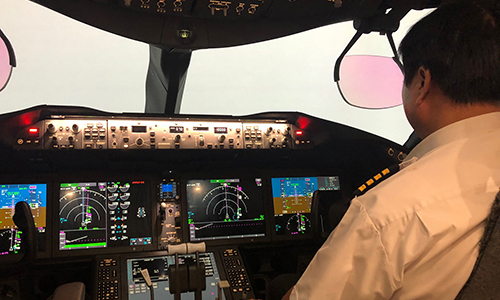 Phi công huấn luyện trong buồng lái mô phỏng. Ảnh: Anh Duy.
