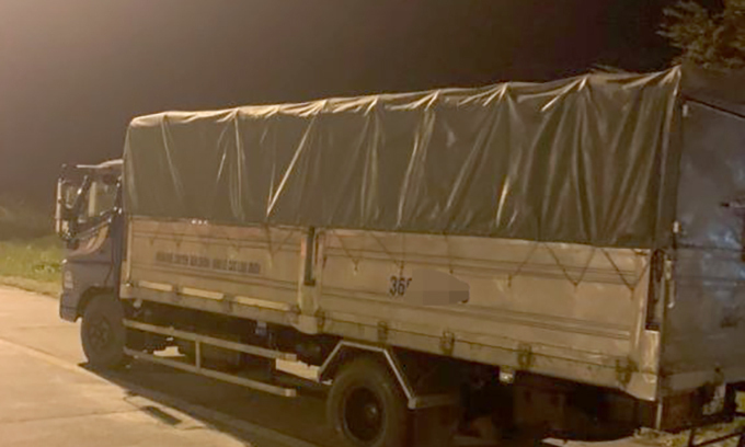 Chiếc xe tải dừng lại ở đồn cảnh sát. Ảnh: Trường Sơn