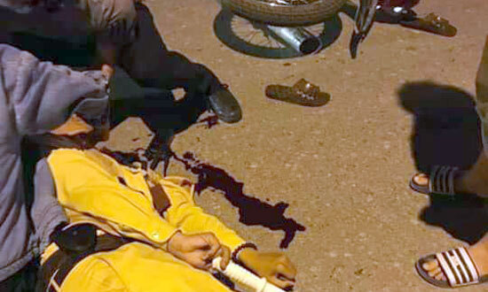 Tại hiện trường, chiếc xe máy bị hư hỏng nhẹ còn nam sinh nằm cách đó khoảng 1m. Khi vụ tai nạn xảy ra, lực lượng làm nhiệm vụ đã đưa Thiếu tá Nja và một sinh viên đến Bệnh viện 103 để sơ cứu. Không ai trong số họ bị thương nặng.