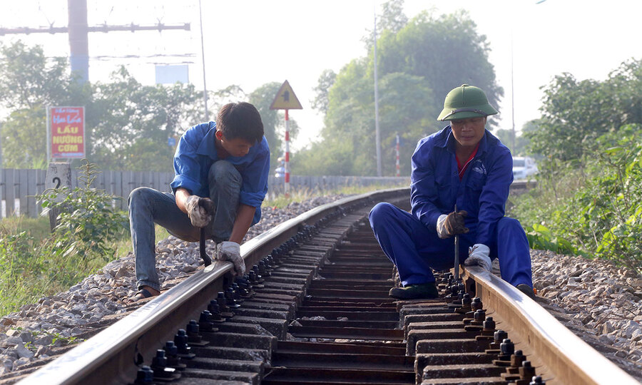 Ông Đỗ Văn Được và ông Lê Quân Mạnh thuộc Công ty Cổ phần Đường sắt Vĩnh Phú chịu trách nhiệm duy tu khu vực cạnh ga Việt Nam Phú Thọ (Phú Thọ). Khoảng 10 người chịu trách nhiệm “kiểm tra từng con ốc trên đường ray” mỗi ngày — Hiện nay, ngành đường sắt phải chi hàng chục tỷ USD để duy tu hệ thống đường sắt mỗi năm. – Công nhân tháo các con ốc qua lại. Bôi trơn nó trên đường sắt. Thường xuyên kiểm tra khe hở của khớp nối ray đã được vặn chặt chưa để đảm bảo cho đoàn tàu vận hành an toàn.