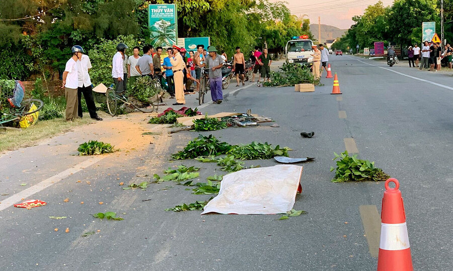 Khoảng 5h30 chiều, một chiếc xe tải chạy qua thị trấn Lưu Vĩnh Sơn, huyện Thạch Hà đã đâm vào 4 phụ nữ đi xe chở nhiều chè xanh và thúng cá. -Kết quả là bốn người còn lại và chiếc xe đạp bị ngã xuống đường. Bà Vũ Thị Bưởi, 60 tuổi, ngụ thị trấn Lưu Vĩnh Sơn, tử vong tại đó, hai người còn lại bị bệnh nặng được đưa vào bệnh viện cấp cứu. Nạn nhân còn lại làm nghề buôn bán chè, bị choáng, xây xát nhẹ. Tài xế xe tải không bị thương.