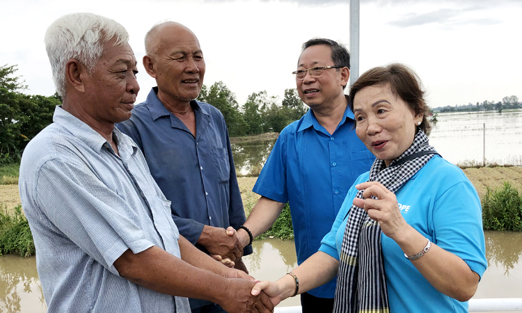 Khi mọi người đi trên cây cầu cải tạo mới hoàn thành, ông Đặng Quang Hoàn, Chủ tịch liên đoàn lao động Bộ Khoa học và Công nghệ, cho biết: “Chúng tôi rất vui khi thấy những kết quả thực tế mà Quỹ Hy vọng hỗ trợ, đặc biệt là sự hợp tác giữa người dân và chính quyền địa phương.” “Ông Huân cho biết sẽ tiếp tục ủng hộ các hoạt động của Quỹ Hy Vọng tại Đồng bằng sông Cửu Long. Xã Trung Thành từ xóm nhỏ Thanh Phước 2 (trái) cảm ơn ông Vọng, đại diện Quỹ Hy Vọng và Công đoàn Bộ Khoa học và Công nghệ đã xây dựng cầu Hy Vọng 40. Ảnh: Cửu Long.