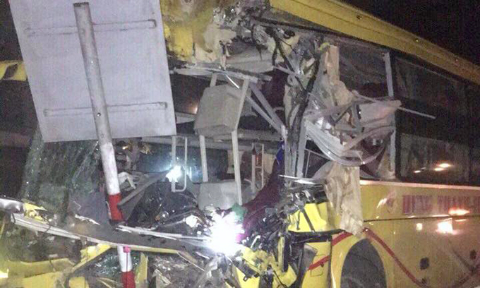 Sau khi xảy ra tai nạn, xe buýt mất lái lao sang lề đường bên phải, tông vào biển báo hiệu xe buýt. Tài xế Hạnh và một phụ nữ quê ở Quảng Bình tử vong, 14 hành khách (trong đó có 4 người nước ngoài) bị thương được đưa vào bệnh viện cấp cứu, những người còn lại hoảng loạn mở cửa thoát ra ngoài. — Tại hiện trường, đầu xe khách biến dạng, kính xe vỡ nát, xe container hư hỏng nặng. Xung quanh có nhiều mảnh vỡ, hai ô tô vương vãi trên đường, vết dầu và vết máu.