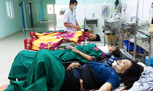 Chiều 16/6, vài giờ sau khi chiếc xe khách lao xuống vách núi đèo Lò Xo, nhiều nạn nhân bị thương đã tỉnh nhưng vẫn còn nguy kịch. Bà Mạc Thị Lan (60 tuổi, quê Bình Phước) cho biết: “Tôi chỉ nhớ la hét ầm ĩ rồi ngất đi, mở mắt ra bệnh viện mới biết mình còn sống” — Nạn nhân đang được điều trị. Được điều trị tại bệnh viện đa khoa Kuntun. Ảnh: Việt Hiền