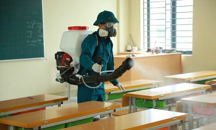 Bộ Y tế ban hành hướng dẫn vệ sinh môi trường, tiêu độc khử trùng vào chiều 3-9. Vì vậy, trước khi học sinh đến lớp, nhà trường nên dọn dẹp vệ sinh môi trường bên ngoài như quét dọn bụi rậm, không để đọng nước. Khử trùng trường học bằng cách xịt hoặc lau sàn, tường, tay nắm cửa, tay vịn cầu thang, tay vịn, bàn ghế, đồ chơi, dụng cụ học tập và các vật dụng trong nhà.