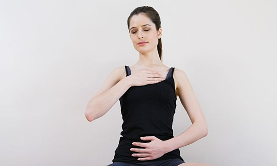 Nhà tâm lý học lâm sàng Belisa Vranich, tác giả cuốn sách “Hơi thở của chiến binh”, cho biết: “Các cơ phụ khi thở bằng vai có thể gây ra nhịp tim, huyết áp và cortisol. Nếu bạn thở bằng cơ hoành, bạn sẽ thư giãn và Bình tĩnh. ”- Tập thở bằng cơ hoành bằng cách đặt tay lên bụng và cảm nhận hơi thở. Nhiếp ảnh: Trí óc rất khỏe