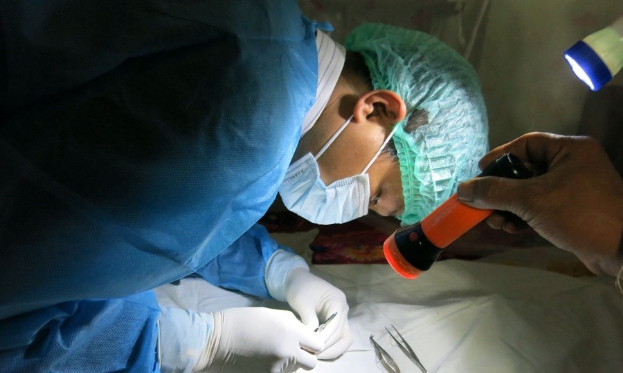 Kỹ thuật viên Hữu Hoàng sẽ hiến giác mạc dưới tác động của đèn pin. Ảnh: Cung cấp một Vai diễn