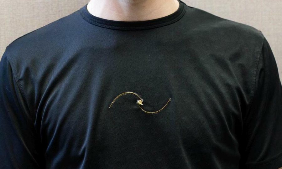 Nhà khoa học đã che chiếc rương bằng một ăng-ten sợi quang, phủ một lớp bạc mỏng. Mỗi khi bạn thở, chất xơ sẽ theo dõi sự thay đổi của chu vi vòng ngực và lượng không khí trong phổi. Ăng-ten hoạt động như một cảm biến và trạm thu phát sóng để thu thập dữ liệu về chuyển động thở của con người và truyền đến điện thoại hoặc máy tính. Theo dõi nhịp thở, nhịp thở, dành cho bệnh nhân hen suyễn, ngưng thở khi ngủ hoặc bệnh phổi tắc nghẽn mãn tính. “Nếu người mặc thở không đều khi ngủ, Áo có thể kích hoạt báo thức.” Messaddeq nói. Chiếc áo phông có thể đo và theo dõi nhịp thở của người mặc. Ảnh: New Atlas
