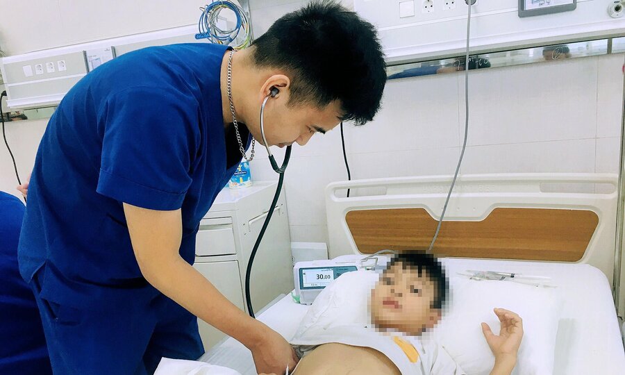Bác sĩ đã sử dụng thuốc an thần để thực hiện thở máy xâm lấn phổi theo chiến lược bảo vệ, hồi sức tích cực và thực hiện các chương trình điều trị bằng kháng sinh theo phương pháp điều trị. Sau 3 ngày điều trị, tình trạng được cải thiện và trẻ được đặt nội khí quản mà không cần thở máy.