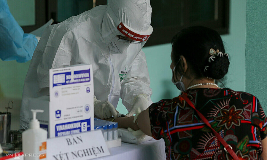 Nhân viên y tế ở quận Renhe, quận Khao Ga, Hà Nội đã nhanh chóng lấy mẫu máu từ những người trở về từ Đà Nẵng vào ngày 30. / 7: Ảnh: OK .
