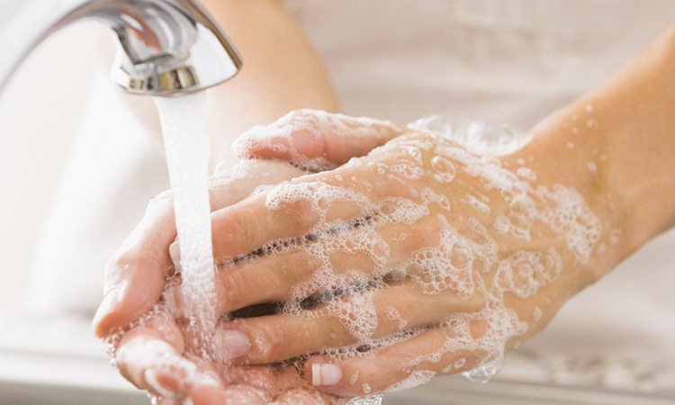 Rửa tay bằng xà phòng dưới vòi nước hoặc dung dịch khử trùng, đặc biệt là sau khi chạm vào đồ vật, gặp gỡ, nói chuyện với người khác và về nhà. Không bắt tay khi gặp người khác và không đặt tay lên mắt, mũi hoặc miệng.