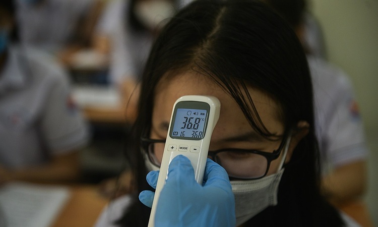 Trước khi học sinh bước vào lớp học. Nhiệt độ phải được đo trong quá trình kiểm tra. – Địa điểm khám – Bộ Y tế yêu cầu địa điểm khám chuẩn bị phòng cách ly y tế tạm thời và trang bị đầy đủ dụng cụ phòng chống dịch như khẩu trang, nước rửa tay. Kiểm tra vệ sinh môi trường, khử trùng xung quanh trường, khu vệ sinh và các phòng kiểm tra.