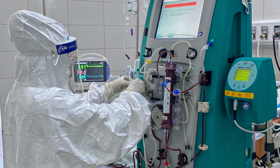 Y tá Nguyễn Văn Hải (Nguyễn Văn Hải) đặt máy lọc máu liên tục hỗ trợ hồi sức tích cực cấp cứu bệnh nhân nguy kịch tại Bệnh viện phổi Đà Nẵng Ảnh: Bác sĩ cung cấp